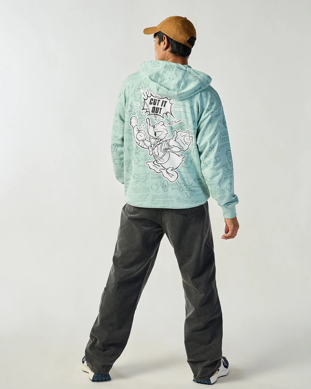 Men’s Green Donald Duck Graphic Printed Oversized Plus Size Hoodies