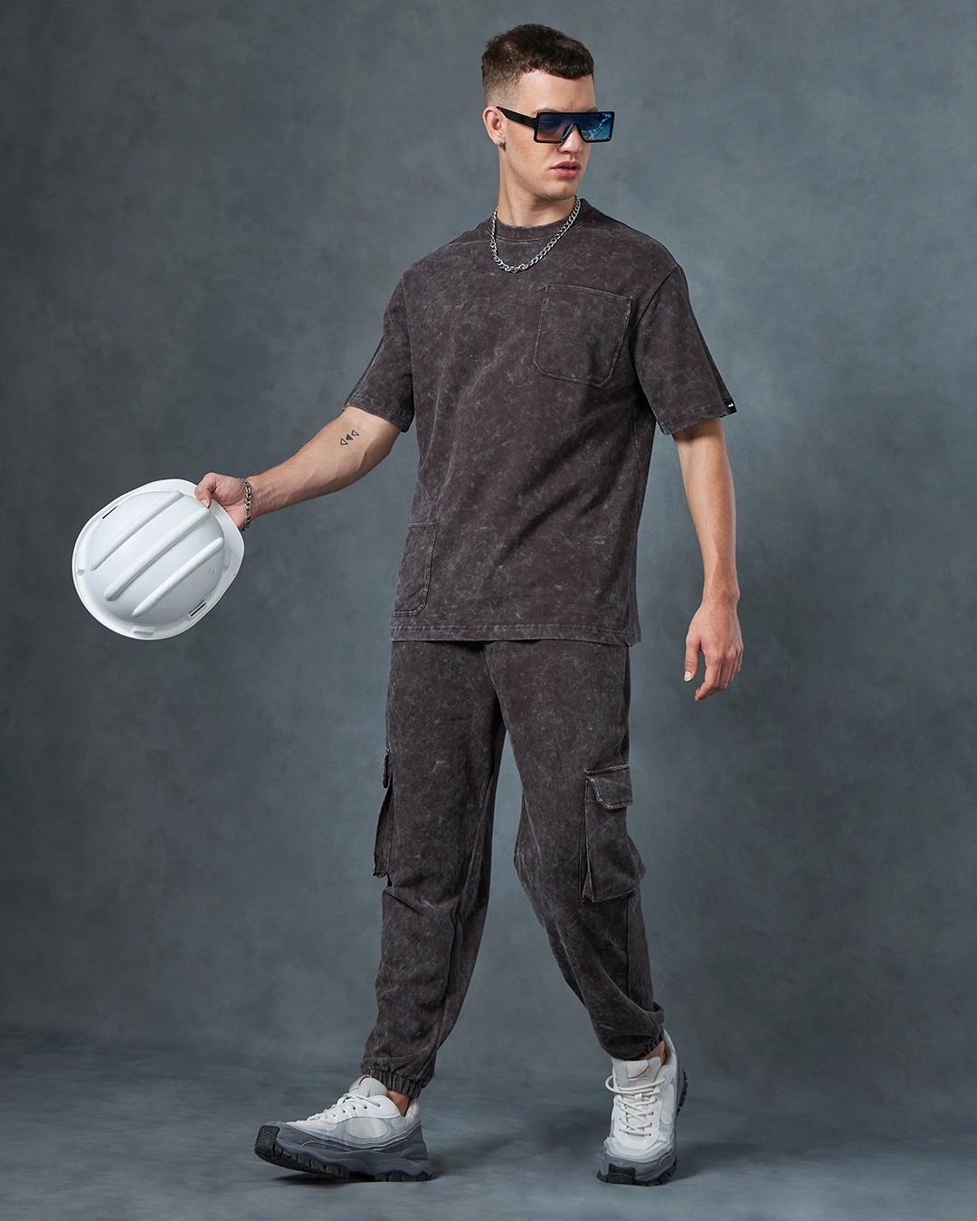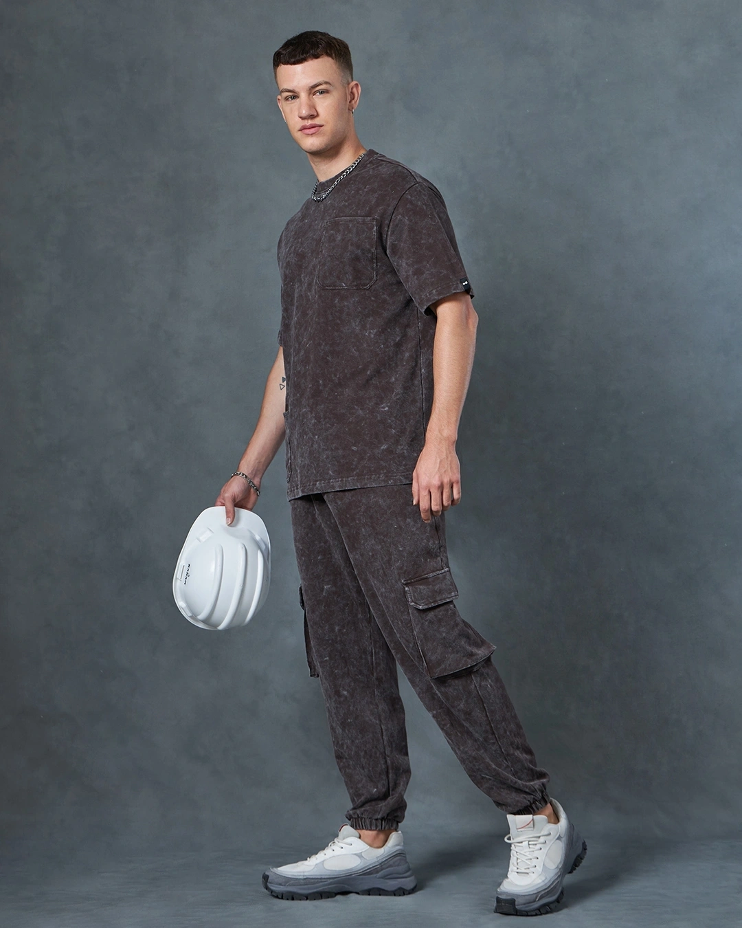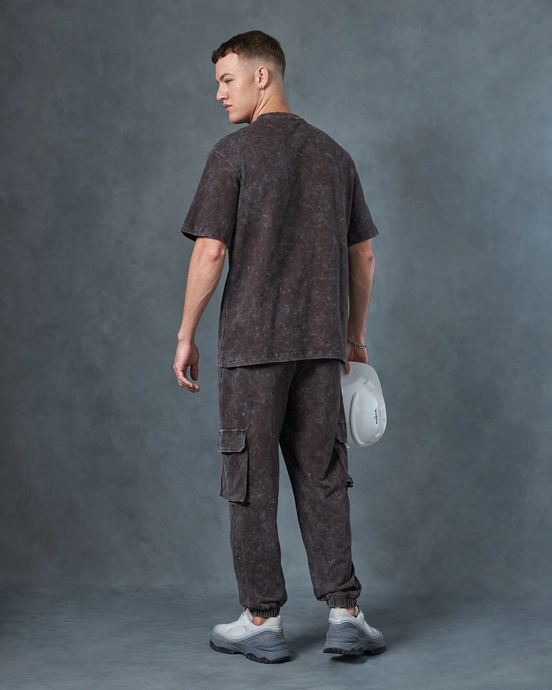Enhance your street style with our Heavy Duty Men’s Brown Oversized Acid Wash Co-ordinates! Make a striking fashion statement with this fashionable and adaptable set.