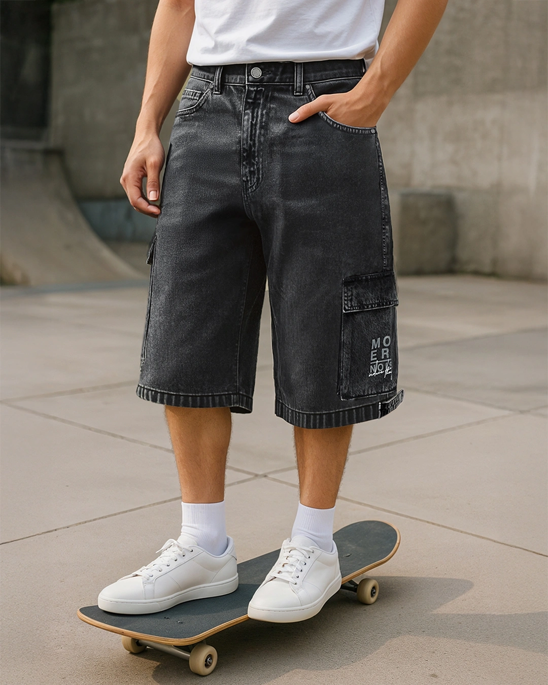 The 1990s have made a request. We responded affirmatively. These Men’s Grey Baggy Fit Washed Cargo Shorts are loose-fitting, bold, and eager to be part of your music selection. Pair them with an oversized hoodie, high socks, and skater shoes.