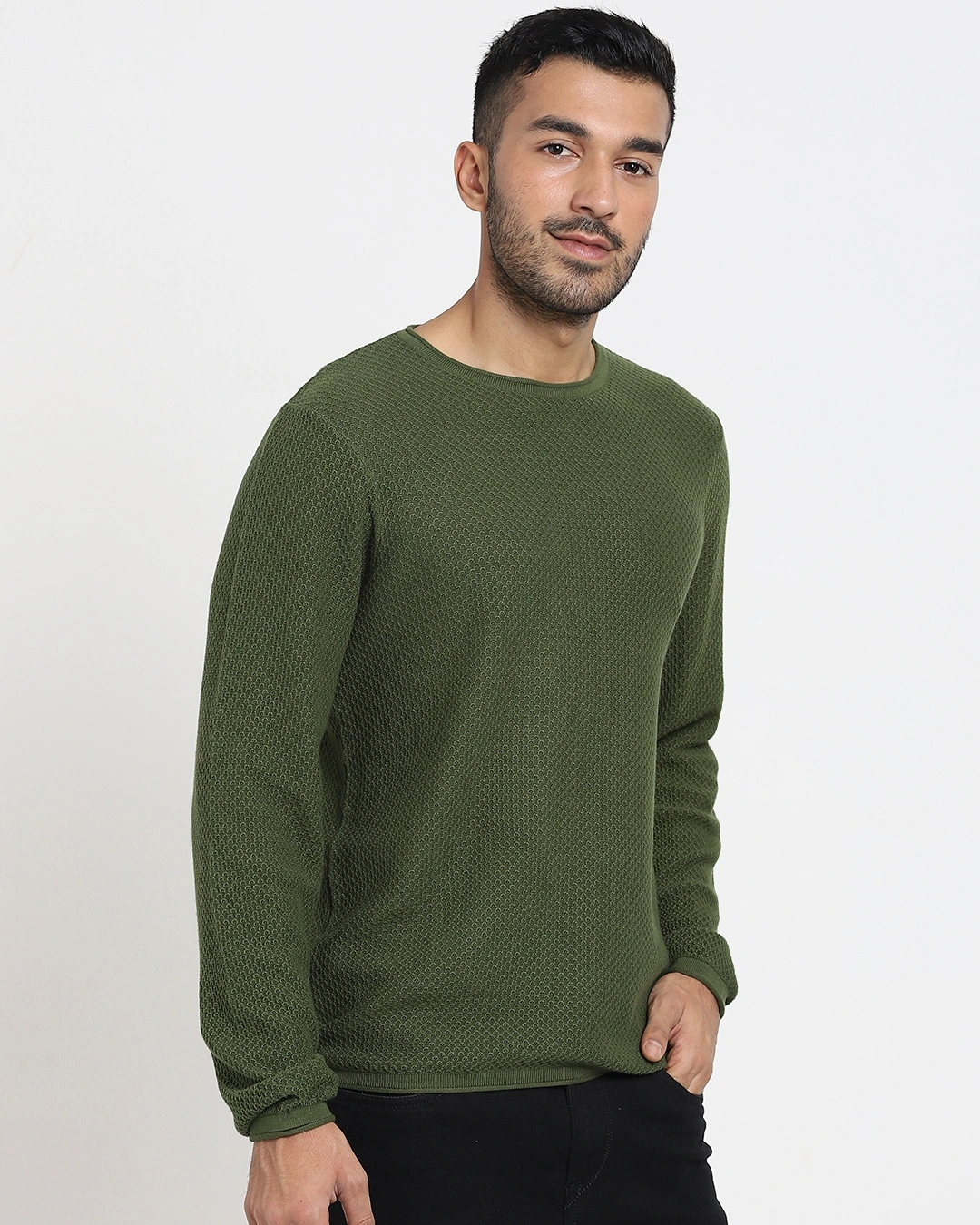Men’s Olive Flat Knits Sweater