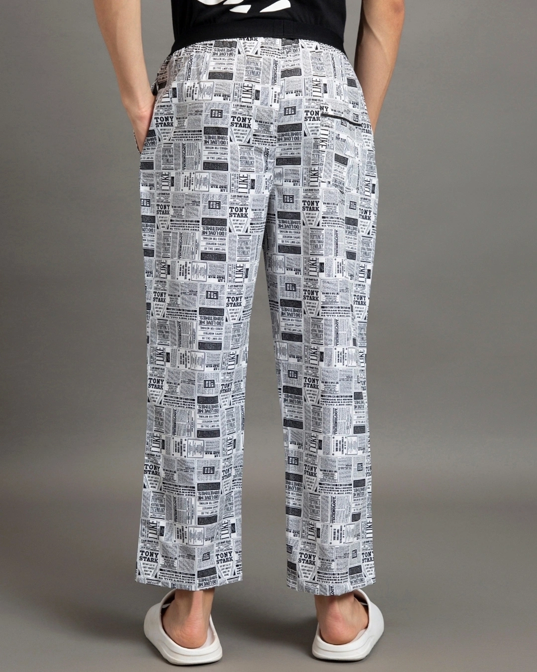 Discover the ideal combination of comfort and elegance with these All Over Printed Men’s White Pyjamas. Pair them with a t-shirt and sliders for a laid-back appearance.