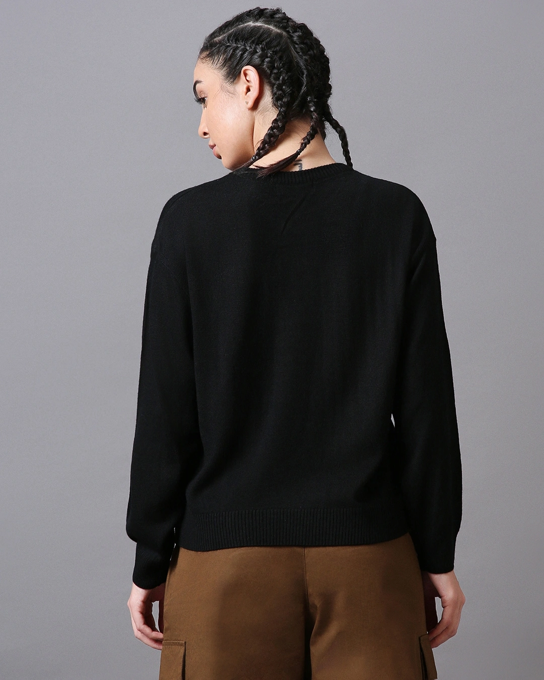 This Women’s Black Sweater perfectly embodies chilly fashion. Pair it with contrasting bootcut jeans and heels for an elegant appearance.