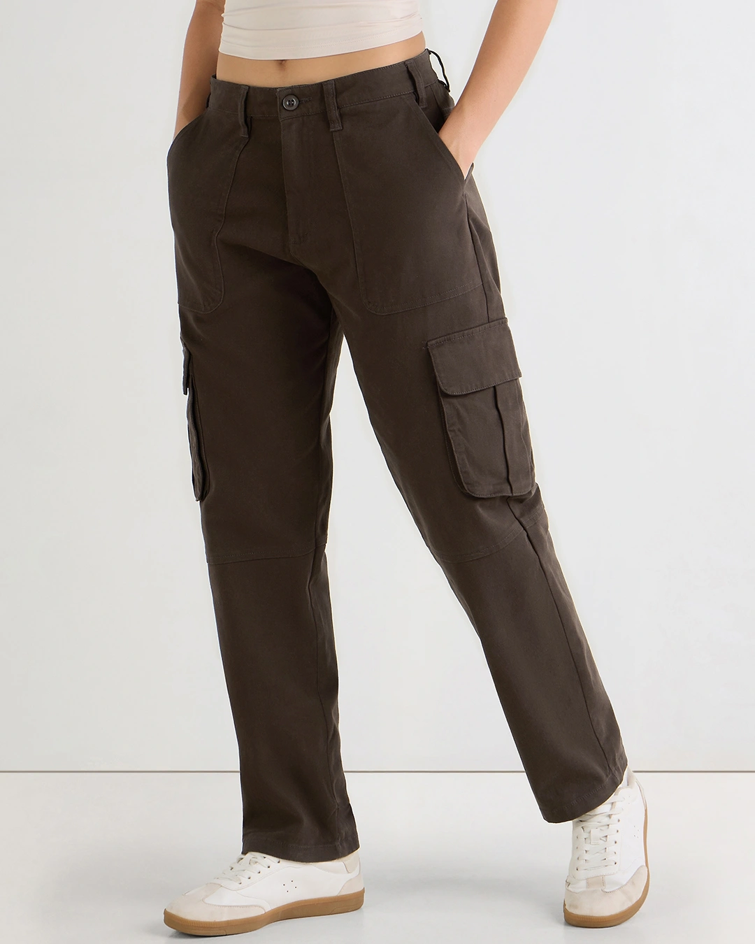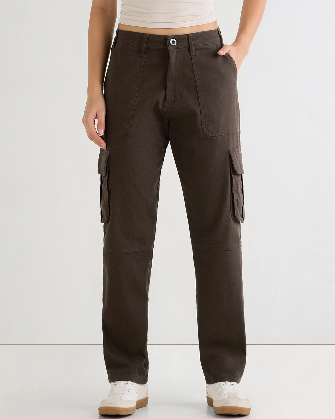 Embrace utility-chic with these Women’s Brown Cargo Pants. Combine them with a tank top and sneakers for an ideal trendy outfit.