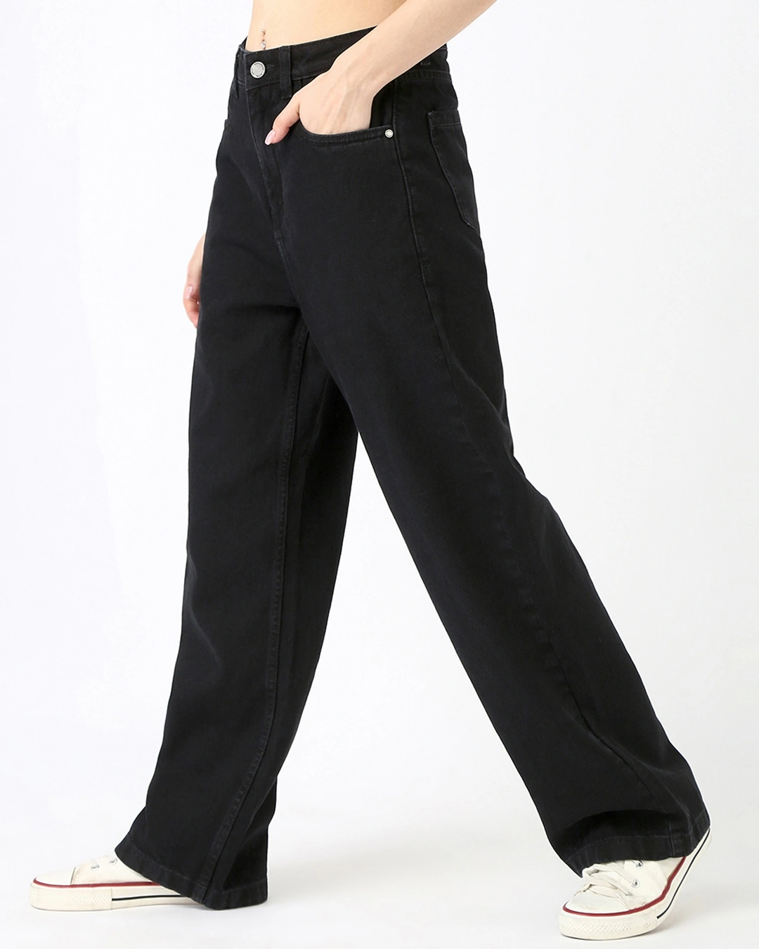 Introducing the Women’s Jet Black Baggy Straight Fit Jeans, the ultimate MVP of your wardrobe. They pair effortlessly with just about anything and exude that ideal IDGAF attitude when combined with a standout crop tee and striking hoop earrings.