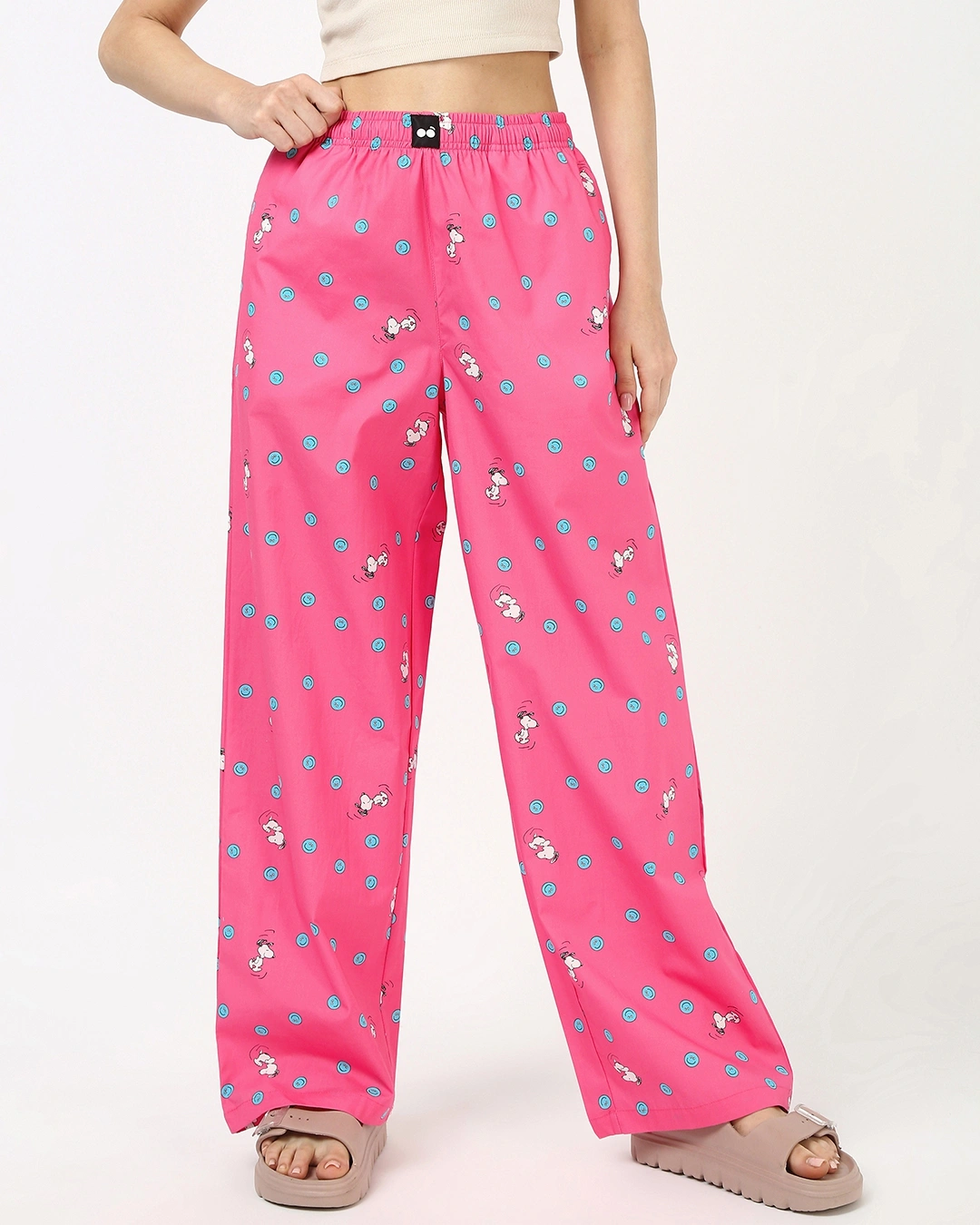 Why choose dull loungewear when you can opt for the Women’s Pink All Over Printed Wide Leg Pyjamas? Incredibly soft and undeniably adorable, these are designed for ultimate relaxation. Combine them with a cropped tee and cozy socks to achieve the perfect slumber party vibe.