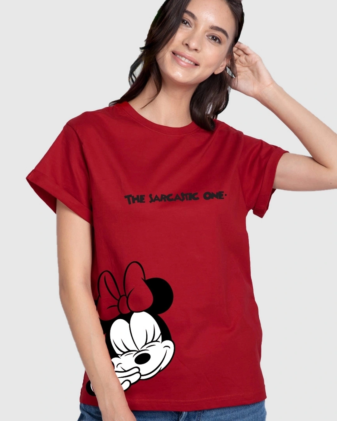 Explore the Women’s Red Sarcastic One Boyfriend Graphic Printed T-shirt available from our Official Disney Merchandise, which perfectly combines humor and style for the woman who always has a witty response. This graphic print t-shirt is designed for women who embrace unapologetically sassy and sharp humor. The striking red hue imparts an eye-catching, fiery essence, while the playful Sarcastic One graphic clearly indicates that you are not someone to be trifled with.