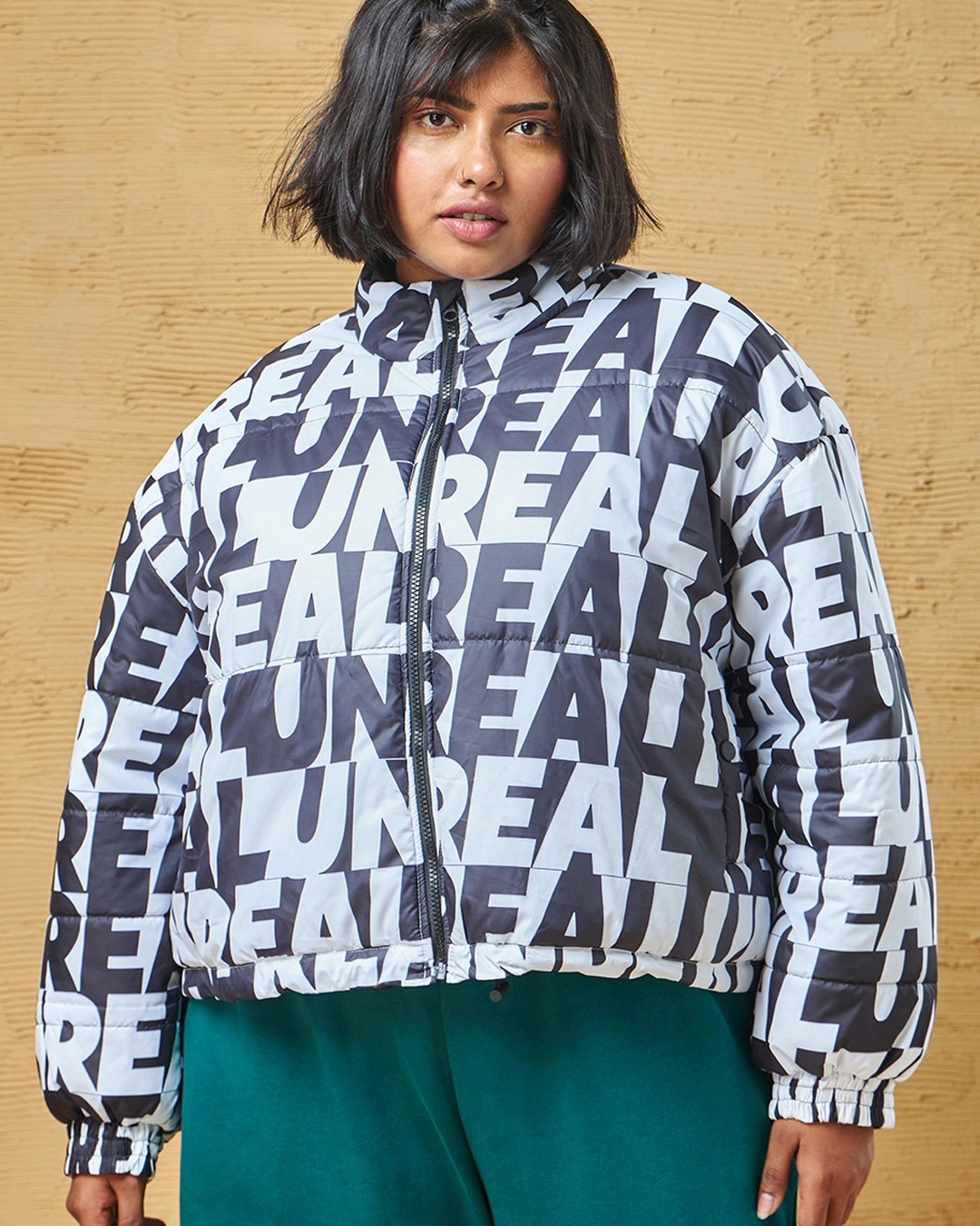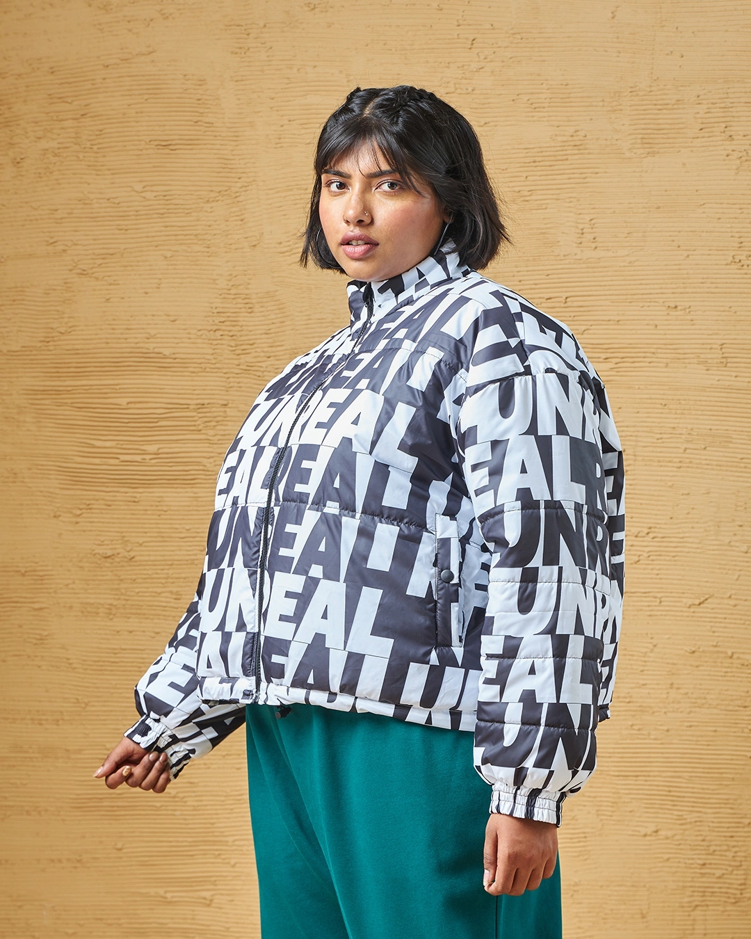 Transform your look with our All Over Printed Women’s White & Black Oversized Plus Size Jacket. Pair it with a t-shirt, cargo pants, and sneakers for a chic appearance.